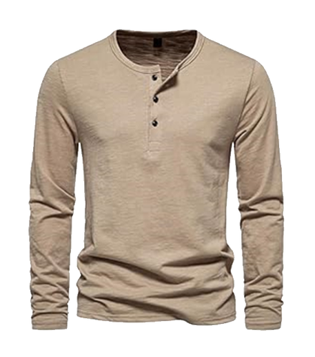 Camiseta manga larga cuello redondo con botones corte V-Neck.