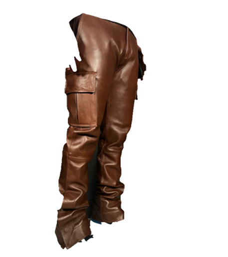 Chamarra de piel genuina cuello redondo con incrustación de piel de antílope en color rojo sellada con nuestras iniciales de Ruta Madre grabado en el exterior, jaladera de piel con calavera de acero.