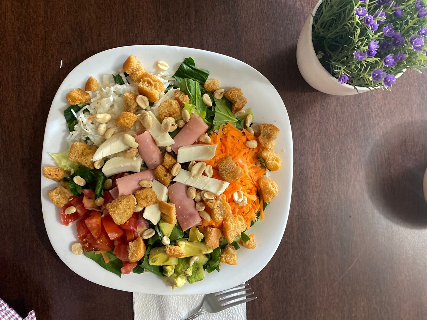 Ensalada Fit: lechuga-espinaca-pimiento-jicama-zanahoria-jamon-queso $55