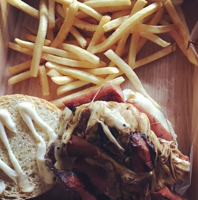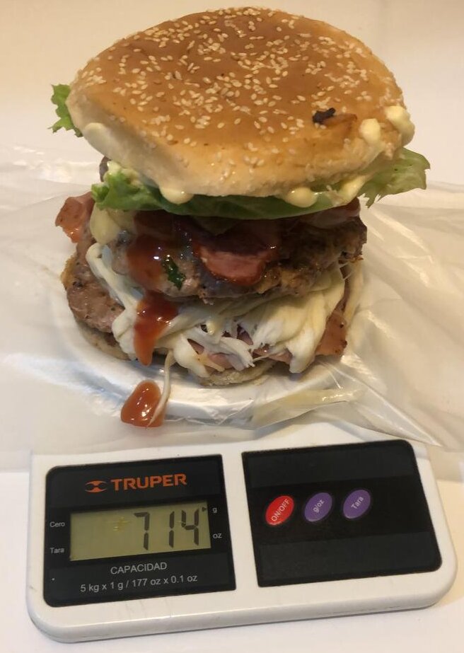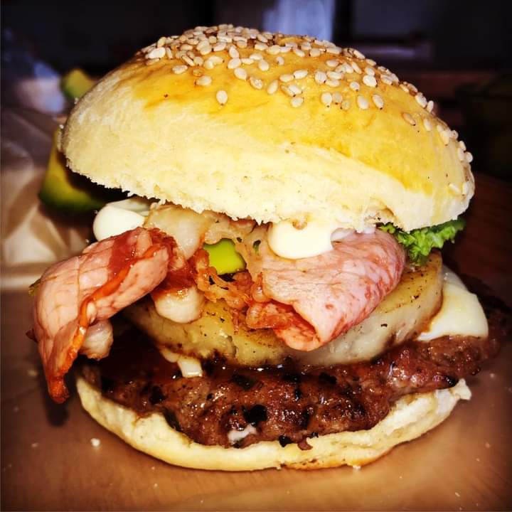 La Atascada Triple: Tres carnes-jamon-quesillo-jitomate-piña-tocino y aguacate $150