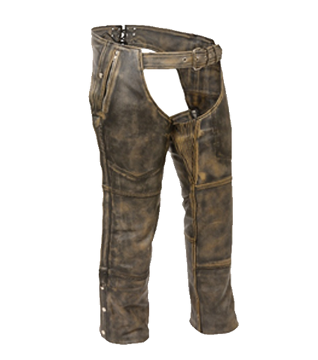Chaleco de piel genuina cuello redondo con incrustación de piel de antílope en color rojo sellada con nuestras iniciales de Ruta Madre grabado en el exterior, jaladera de piel con calavera de acero.