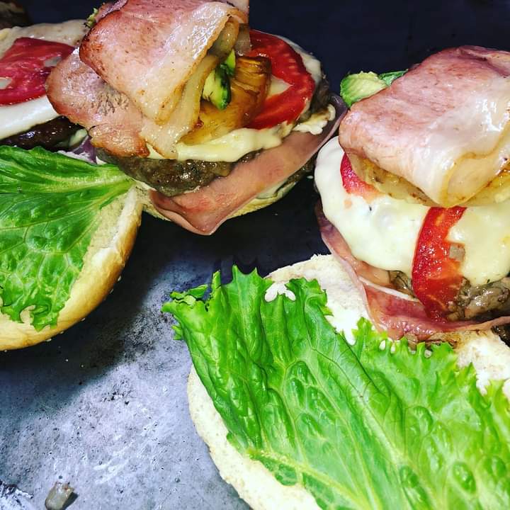 La Atascada: Doble carne-jamon-quesillo-jitomate-piña-tocino y aguacate $120